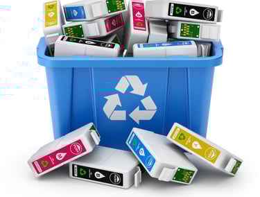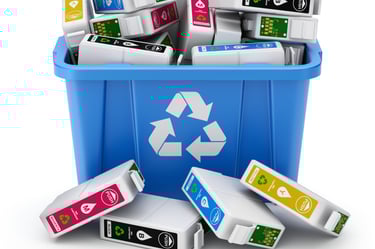 Recycling printers cartridges to minimize plastic waste and encourage sustainable office practices.